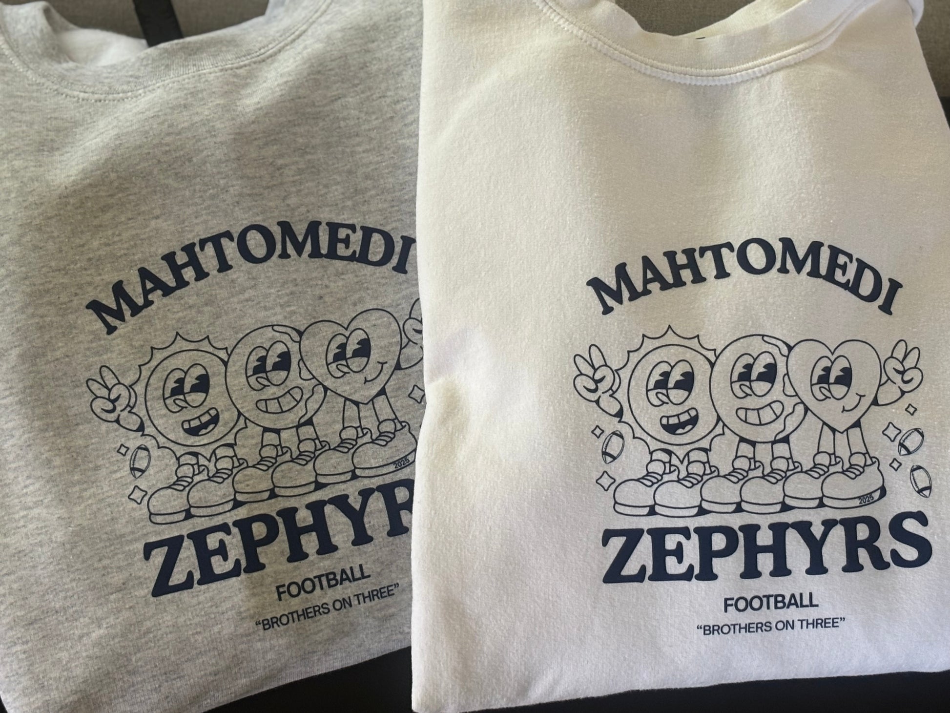 Cute team sweatshirt with 3 characters who are friends and teammates. Player number on back.