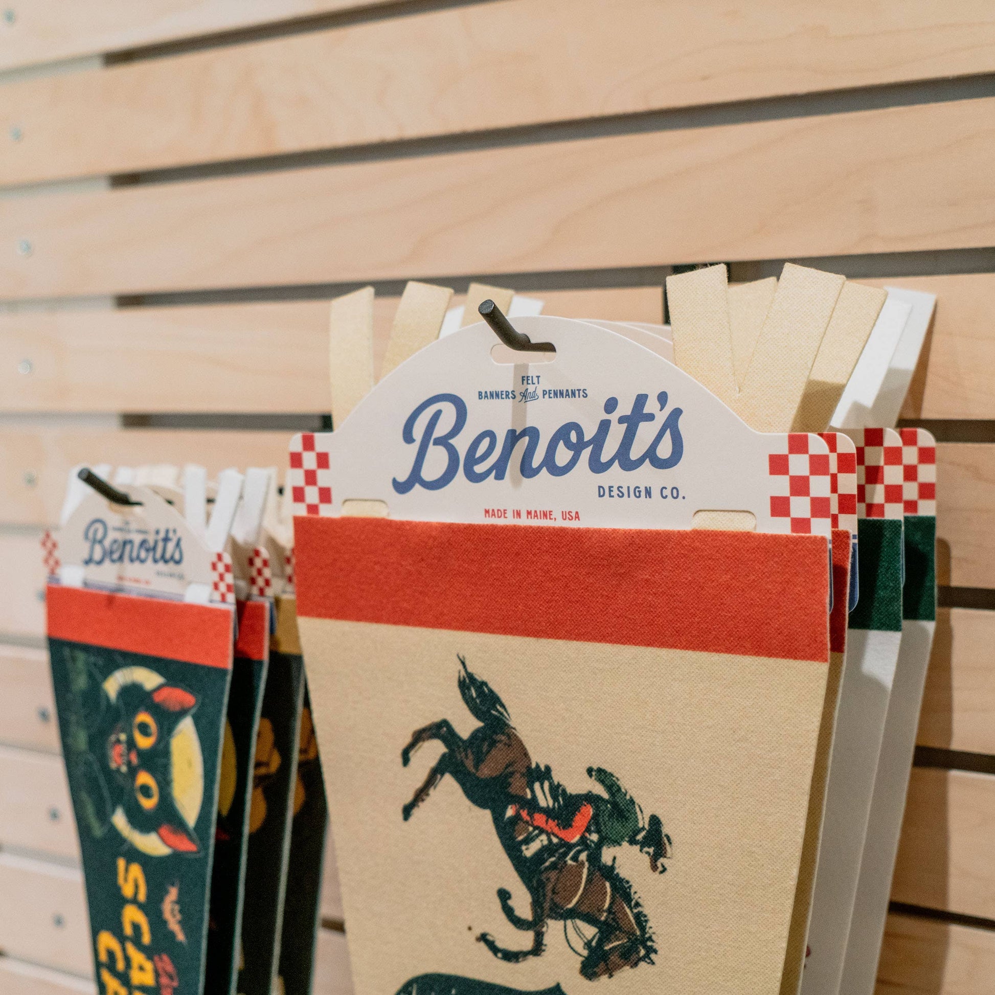 Our pennants are made of one solid piece of fabric. We print our designs directly onto felt, one at a time at our small shop in Maine, USA.
